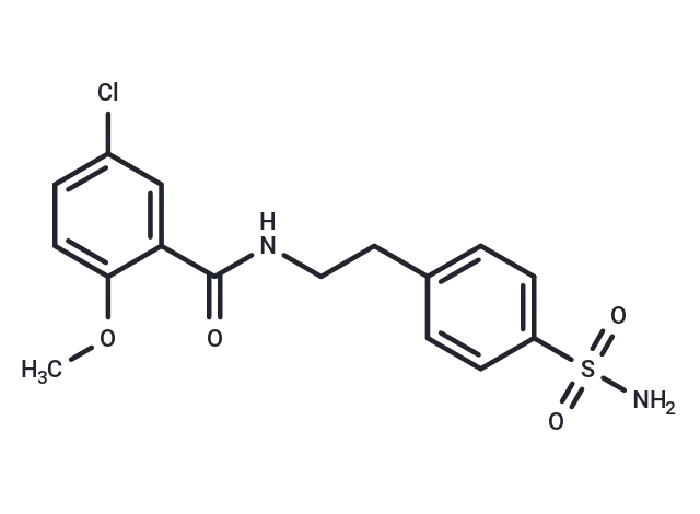 – NLRP3-IN-2 (5-Chloro-N-(p-sulfamoylphenethyl)-o-anisamide), an intermediate capable of synthesizing glibenclamide, exerts an inhibitory effect on the formation of NLRP3 inflammatory vesicles in cardiomyocytes, limiting infarct size after myocardial ischemia/reperfusion in mice and has no effect on metabolism.