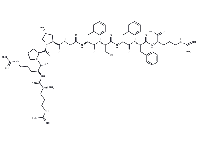 – C(=O)([C@H]1N(C([C@@H](NC([C@@H](CCCNC(=N)N)N)=O)CCCNC(=N)N)=O)CCC1)N2[C@H](C(NCC(N[C@@H](CC3=CC=CC=C3)C(N[C@H](C(N[C@H](CC4=CC=CC=C4)C(N[C@@H](CC5=CC=CC=C5)C(N[C@@H](CCCNC(=N)N)C(O)=O)=O)=O)=O)CO)=O)=O)=O)C[C@@H](O)C2