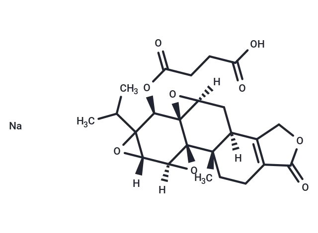 – [Na].[H][C@]12C[C@@]3([H])C4=C(CC[C@]3(C)[C@]35O[C@@]3([H])[C@]3([H])OC3(C(C)C)[C@@H](OC(=O)CCC(O)=O)[C@]15O2)C(=O)OC4 |c:5,@@:20|