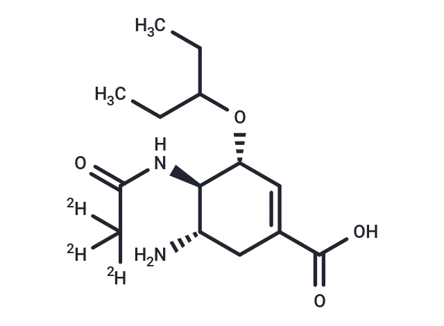 – Oseltamivir-d3 acid(3R,4S,5S) is a deuterated compound of Oseltamivir acid(3R,4S,5S).