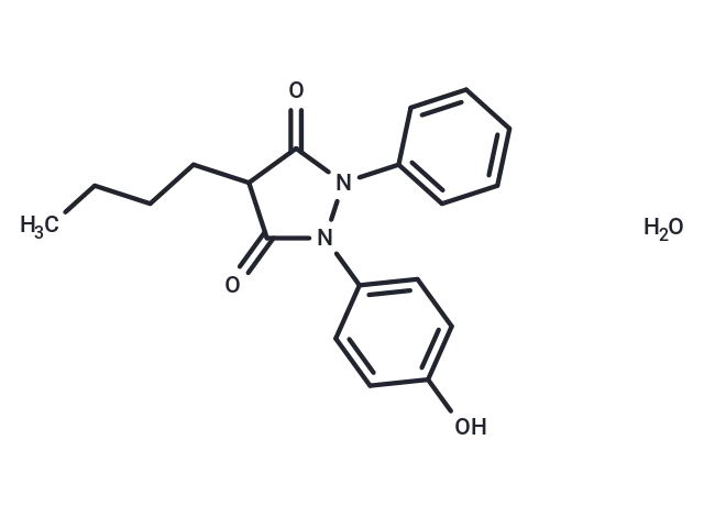 – Oxyphenbutazone monohydrate, a metabolite of Phenylbutazone, exhibits anti-inflammatory properties and acts as a non-selective COX inhibitor when taken orally. It also selectively targets and kills non-replicating Mycobacterium tuberculosis [1] [2].