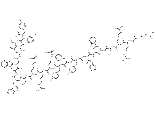 – C([C@@H](C(N[C@@H](CC=1C=2C(NC1)=CC=CC2)C(NCC(N[C@@H](CC3=CC=C(O)C=C3)C(N[C@@H](CC4=CC=C(O)C=C4)C(N[C@@H](CC5=CC=C(O)C=C5)C(O)=O)=O)=O)=O)=O)=O)NC([C@@H](NC([C@@H](NC([C@@H](NC([C@@H](NC([C@H](CC6=CC=C(O)C=C6)NC([C@H](CC7=CC=C(O)C=C7)NC([C@H](CC8=CC=C(O)C=C8)NC(CNC([C@H](CC=9C=%10C(NC9)=CC=CC%10)NC([C@H](CC=%11C=%12C(NC%11)=CC=CC%12)NC([C@@H](NC([C@@H](NC([C@@H](NC([C@H](CCCNC(=N)N)N)=O)CCCNC(=N)N)=O)CCCNC(=N)N)=O)CS)=O)=O)=O)=O)=O)=O)=O)CCCNC(=N)N)=O)CCCNC(=N)N)=O)CCCNC(=N)N)=O)CS)=O)C=%13C=%14C(NC%13)=CC=CC%14