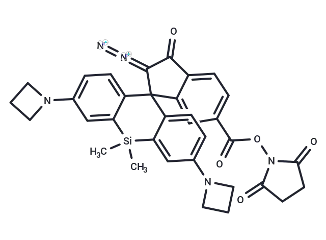 – C[Si]1(C)c2cc(ccc2C2(C(=[N+]=[N-])C(=O)c3ccc(cc23)C(=O)ON2C(=O)CCC2=O)c2ccc(cc12)N1CCC1)N1CCC1