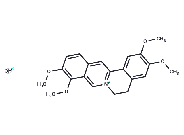 – Palmatine hydroxide is an orally active, irreversible inhibitor of indoleamine 2,3-dioxygenase 1 (IDO-1), demonstrating IC50 values of 3 μM for HEK 293-hIDO-1 and 157μM for rhIDO-1. Additionally, it uncompetitively inhibits the West Nile virus (WNV) NS2B-NS3 protease with an IC50 of 96 μM. This compound exhibits a range of biological activities, including anti-cancer, anti-oxidation, anti-inflammatory, neuroprotective, antibacterial, and antiviral effects.