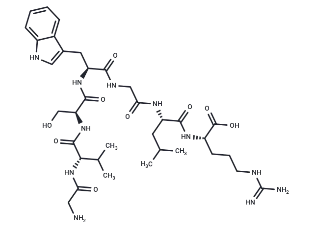 – CC(C)C[C@H](NC(=O)CNC(=O)[C@H](Cc1c[nH]c2ccccc12)NC(=O)[C@H](CO)NC(=O)[C@@H](NC(=O)CN)C(C)C)C(=O)N[C@@H](CCCNC(N)=N)C(O)=O