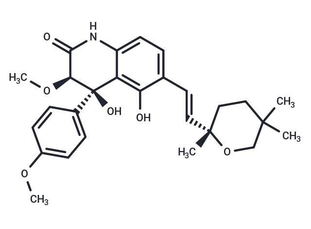 – O[C@@]1(C=2C(NC(=O)[C@@H]1OC)=CC=C(/C=C/[C@]3(C)CCC(C)(C)CO3)C2O)C4=CC=C(OC)C=C4