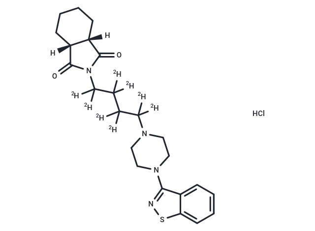– Perospirone-d8 HCl is a deuterated compound of Perospirone HCl. Perospirone HCl has a CAS number of 129273-38-7. Perospirone hydrochloride is an atypical antipsychotic agent for the treatment of schizophrenia.  It also displays affinity towards 5HT1A receptors as a partial agonist.