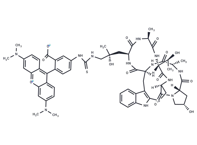 – [H][C@@]12C[C@H](O)CN1C(=O)[C@]1([H])CSc3[nH]c4ccccc4c3C[C@]([H])(NC(=O)[C@H](C)NC2=O)C(=O)N[C@@H](C[C@@](C)(O)CNC(=S)Nc2ccc(c(c2)C([O-])=O)-c2c3ccc(cc3[o+]c3cc(ccc23)N(C)C)N(C)C)C(=O)N[C@@H](C)C(=O)N[C@]([H])([C@H](C)O)C(=O)N1