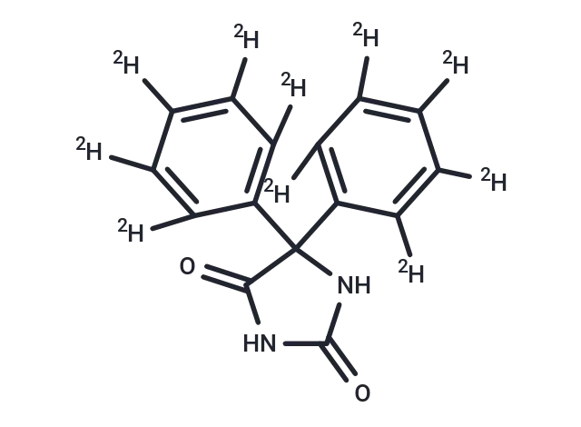 – Phenytoin-d10 is intended for use as an internal standard for the quantification of phenytoin by GC- or LC-MS. Phenytoin is an anticonvulsant agent and active metabolite of fosphenytoin. Phenytoin is formed from fosphenytoin by tissue phosphatases. It inhibits neuronal voltage-gated sodium channels in a voltage-dependent manner. Phenytoin reduces the neuronal firing frequency and decreases the amplitude of excitatory post-synaptic potentials (EPSPs) in electrically stimulated rat corticostriatal slices. It protects against seizures induced by maximal electroshock (MES) in mice. Formulations containing phenytoin have been used in the treatment of tonic-clonic seizures and status epilepticus.