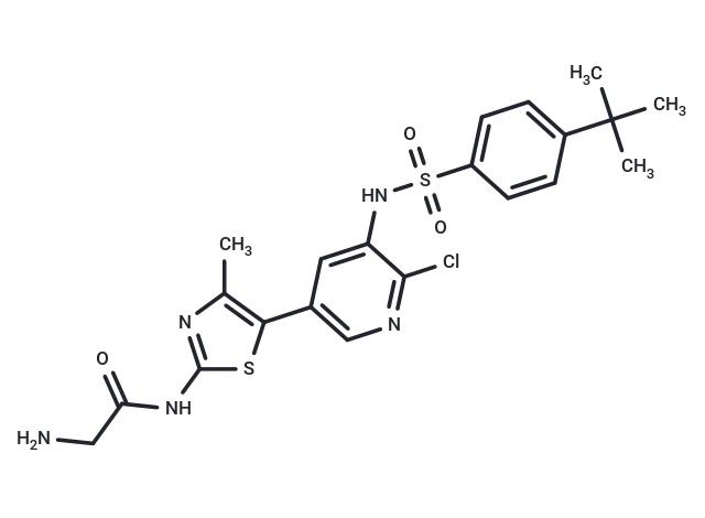 – CC1=C(SC(NC(CN)=O)=N1)C=2C=C(NS(=O)(=O)C3=CC=C(C(C)(C)C)C=C3)C(Cl)=NC2