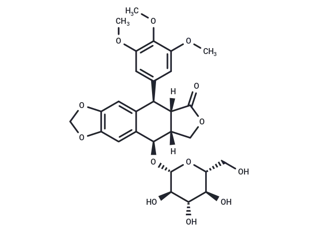 – O=C1[C@]2([C@@H](C=3C([C@H](O[C@@H]4O[C@H](CO)[C@@H](O)[C@H](O)[C@H]4O)[C@]2(CO1)[H])=CC5=C(C3)OCO5)C6=CC(OC)=C(OC)C(OC)=C6)[H]