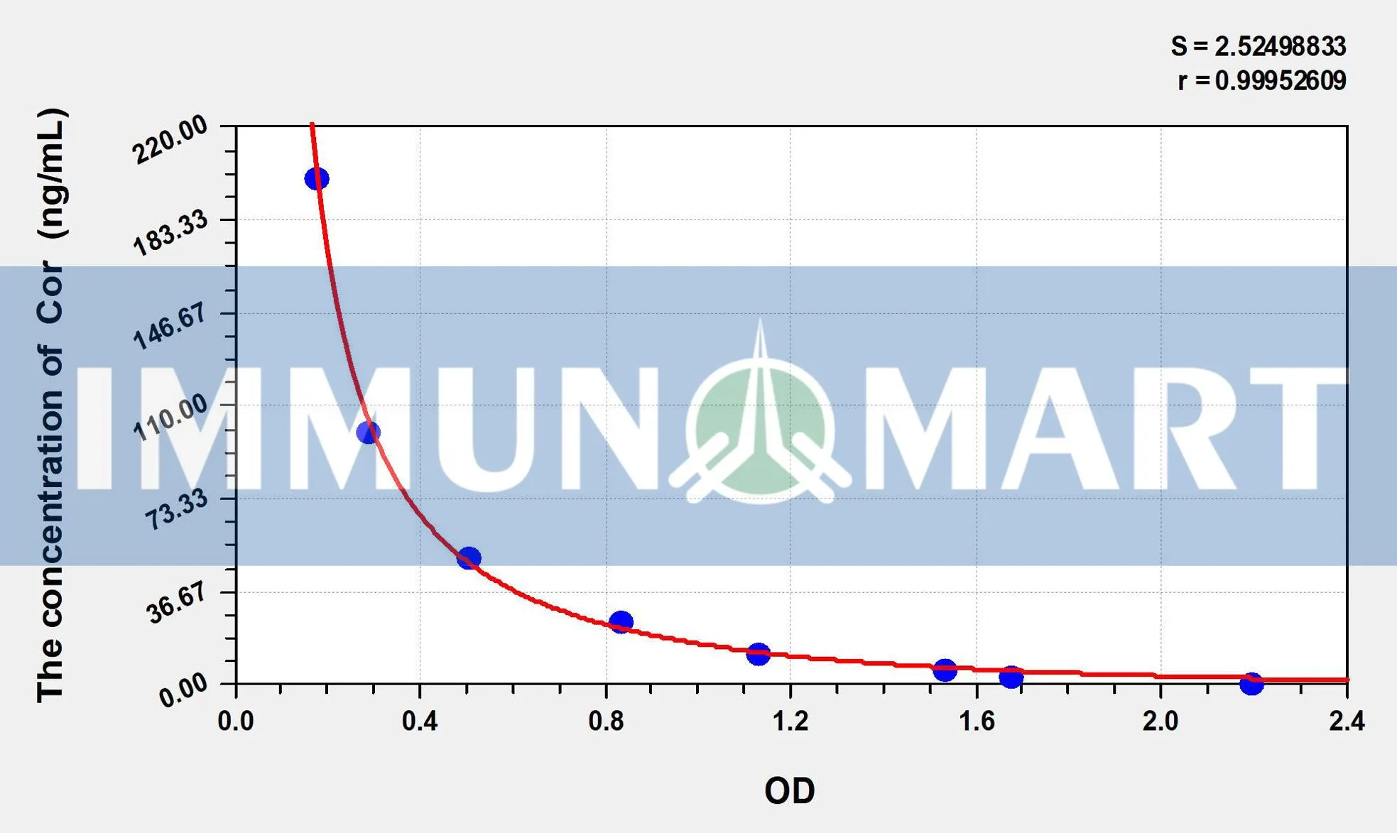 – This assay employs the competitive inhibition enzyme immunoassay technique. The microtiter plate provided in this kit has been pre-coated with Pig Cor protein. Standards or samples are added to the appropriate microtiter plate wells then with a biotin-conjugated antibody specific to Pig Cor. Next, Avidin conjugated to Horseradish Peroxidase (HRP) is added to each microplate well and incubated. After TMB substrate solution is added. The enzyme-substrate reaction is terminated by the addition of sulphuric acid solution and the color change is measured spectrophotometrically at a wavelength of 450nm ± 10nm. The concentration of Pig Cor in the samples is then determined by comparing the OD of the samples to the standard curve.