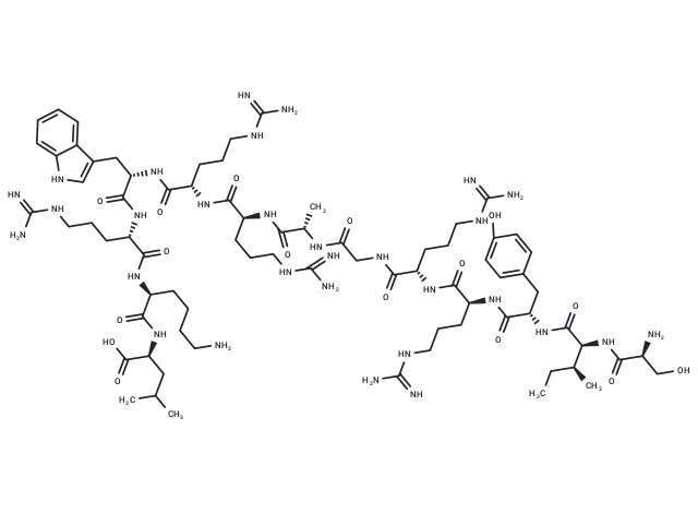 – C([C@@H](C(N[C@H](C(N[C@H](C(N[C@@H](CC(C)C)C(O)=O)=O)CCCCN)=O)CCCNC(=N)N)=O)NC([C@@H](NC([C@@H](NC([C@@H](NC(CNC([C@@H](NC([C@@H](NC([C@H](CC1=CC=C(O)C=C1)NC([C@@H](NC([C@H](CO)N)=O)[C@H](CC)C)=O)=O)CCCNC(=N)N)=O)CCCNC(=N)N)=O)=O)C)=O)CCCNC(=N)N)=O)CCCNC(=N)N)=O)C=2C=3C(NC2)=CC=CC3