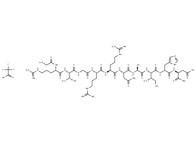 – OC(=O)C(F)(F)F.CC[C@H](C)[C@H](NC(=O)[C@H](C)NC(=O)[C@H](CC(N)=O)NC(=O)[C@H](CCCNC(N)=N)NC(=O)[C@H](CCCNC(N)=N)NC(=O)CNC(=O)[C@@H](NC(=O)[C@H](CCCNC(N)=N)NC(=O)CN)[C@@H](C)O)C(=O)N[C@H](Cc1cnc[nH]1)C(=O)N[C@@H](CC(O)=O)C(N)=O