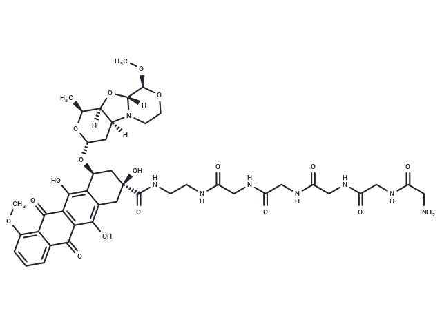 – [H][C@]12C[C@H](O[C@H]3C[C@@](O)(Cc4c(O)c5C(=O)c6cccc(OC)c6C(=O)c5c(O)c34)C(=O)NCCNC(=O)CNC(=O)CNC(=O)CNC(=O)CNC(=O)CN)O[C@@H](C)[C@@]1([H])O[C@]1([H])[C@@H](OC)OCCN21