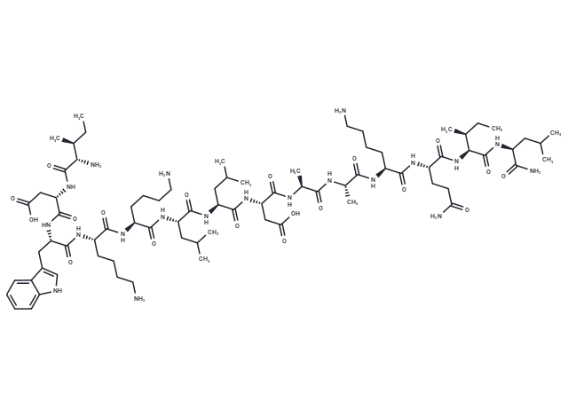 – CC[C@H](C)[C@H](N)C(=O)N[C@@H](CC(O)=O)C(=O)N[C@@H](Cc1c[nH]c2ccccc12)C(=O)N[C@@H](CCCCN)C(=O)N[C@@H](CCCCN)C(=O)N[C@@H](CC(C)C)C(=O)N[C@@H](CC(C)C)C(=O)N[C@@H](CC(O)=O)C(=O)N[C@@H](C)C(=O)N[C@@H](C)C(=O)N[C@@H](CCCCN)C(=O)N[C@@H](CCC(N)=O)C(=O)N[C@@H]([C@@H](C)CC)C(=O)N[C@@H](CC(C)C)C(N)=O