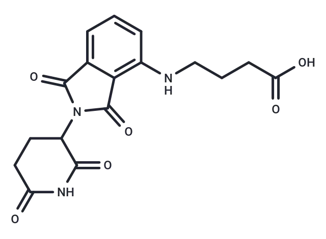 – Butanoic acid, 4-[[2-(2,6-dioxo-3-piperidinyl)-2,3-dihydro-1,3-dioxo-1H-isoindol-4-yl]amino]- (4-[[2-(2,6-dioxopiperidin-3-yl)-1,3-dioxoisoindol-4-yl]amino]butanoic acid) is a Cereblon ligand with alkyl linker and terminal acid for onward chemistry.