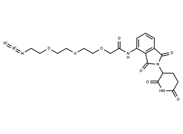– Pomalidomide-PEG3-azide is a chemically synthesized conjugate comprised of a cereblon ligand based on Pomalidomide, an E3 ligase ligand-linker, and a 3-unit PEG linker. This conjugate is specifically designed for use in PROTAC technology.