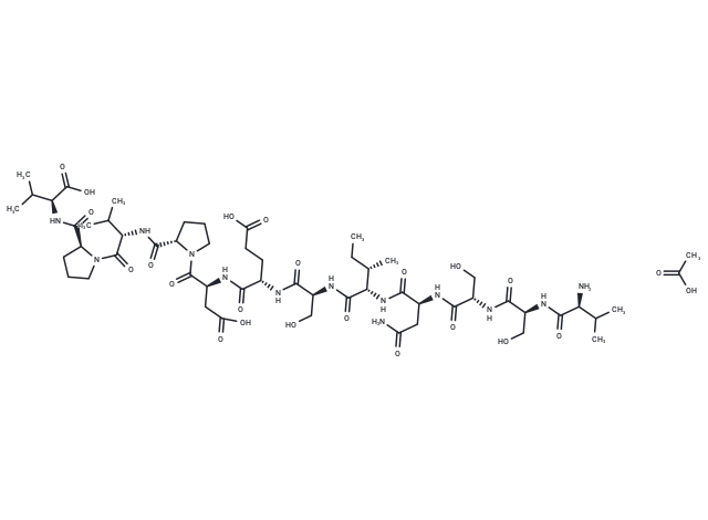 – CC[C@H](C)[C@@H](C(=O)N[C@@H](CO)C(=O)N[C@@H](CCC(=O)O)C(=O)N[C@@H](CC(=O)O)C(=O)N1CCC[C@H]1C(=O)N[C@@H](C(C)C)C(=O)N2CCC[C@H]2C(=O)N[C@@H](C(C)C)C(=O)O)NC(=O)[C@H](CC(=O)N)NC(=O)[C@H](CO)NC(=O)[C@H](CO)NC(=O)[C@H](C(C)C)N.CC(O)=O