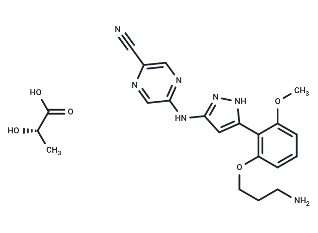 – [C@@H](C(O)=O)(C)O.O(CCCN)C1=C(C(OC)=CC=C1)C2=CC(NC=3C=NC(C#N)=CN3)=NN2