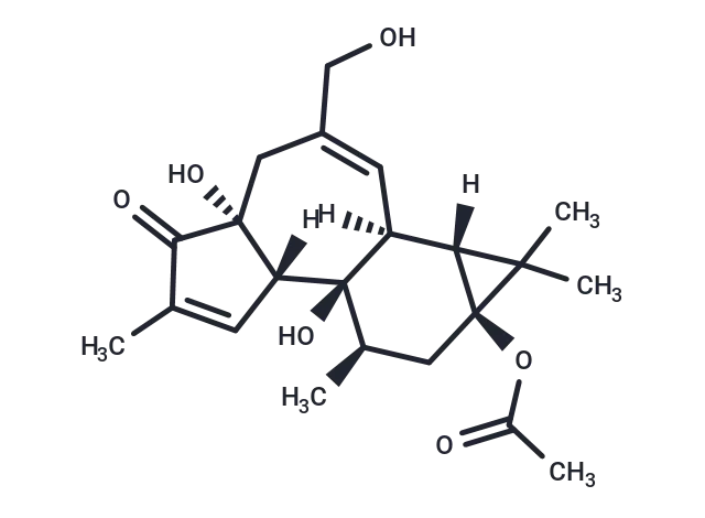 – Prostratin (12-Deoxyphorbol-13-acetate) is an orally active protein kinase C (PKC) activator with a Ki value of 12.5 nM.As an NF-κB activator, Prostratin activates HIV gene expression in T cells.Prostratin inhibits the growth of acute myeloid leukemia (AML) cell lines and enhances cytarabine-induced AML cell differentiation. In addition, Prostratin induced KRAS phosphorylation and inhibited the growth of KRAS-mutated tumors.