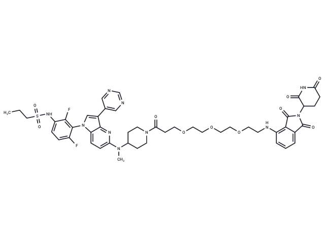 – FC1=C(N2C=3C(C(=C2)C=4C=NC=NC4)=NC(N(C)C5CCN(C(CCOCCOCCOCCNC6=C7C(C(=O)N(C7=O)C8C(=O)NC(=O)CC8)=CC=C6)=O)CC5)=CC3)C(F)=CC=C1NS(CCC)(=O)=O