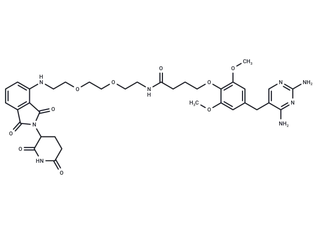 – PROTAC eDHFR Degrader-1 is a potent compound targeting and degrading eDHFR-YFP and various proteins of interest (POIs), such as YFP and Luciferase [1].