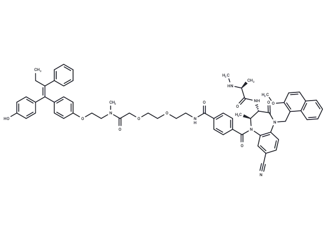 – OC1=CC=C(/C(C2=CC=C(OCCN(C)C(COCCOCCNC(C3=CC=C(C(N4[C@@H](C)[C@H](NC([C@H](C)NC)=O)C(N(CC5=C(OC)C=CC6=C5C=CC=C6)C7=C4C=C(C#N)C=C7)=O)=O)C=C3)=O)=O)C=C2)=C(C8=CC=CC=C8)CC)C=C1