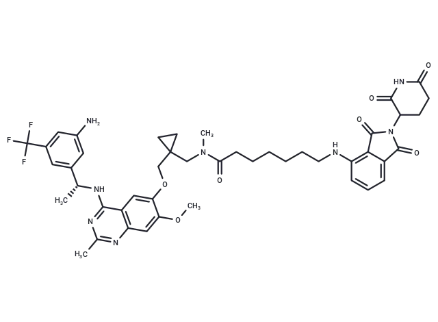 – C(OC1=CC2=C(C=C1OC)N=C(C)N=C2N[C@H](C)C3=CC(C(F)(F)F)=CC(N)=C3)C4(CN(C(CCCCCCNC5=C6C(C(=O)N(C6=O)C7C(=O)NC(=O)CC7)=CC=C5)=O)C)CC4