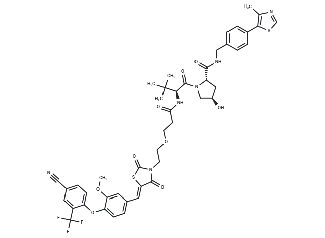 – O=C([C@H]1N(C([C@@H](NC(CCOCCN(C/2=O)C(SC2=C/C3=CC=C(OC4=CC=C(C#N)C=C4C(F)(F)F)C(OC)=C3)=O)=O)C(C)(C)C)=O)C[C@H](O)C1)NCC5=CC=C(C6=C(C)N=CS6)C=C5
