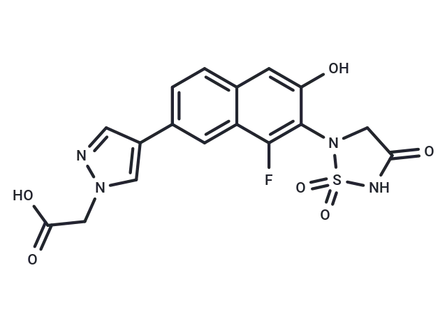 – O=C(O)CN1N=CC(=C1)C2=CC=C3C=C(O)C(=C(F)C3=C2)N4CC(=O)NS4(=O)=O