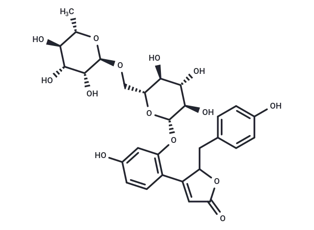 – C(C1C(=CC(=O)O1)C2=C(O[C@@H]3O[C@H](CO[C@H]4[C@H](O)[C@H](O)[C@@H](O)[C@H](C)O4)[C@@H](O)[C@H](O)[C@H]3O)C=C(O)C=C2)C5=CC=C(O)C=C5