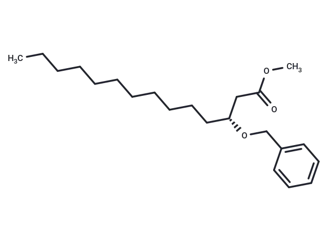 – R-(3)-Benzyloxymyristic acid methyl ester is a non-polar solvent with activity for studying lipid-related interactions. It can be used in scientific research to explore the properties and behaviors of cell membranes. In biochemical experiments, R-(3)-Benzyloxymyristic acid methyl ester demonstrates excellent solubility and compatibility.