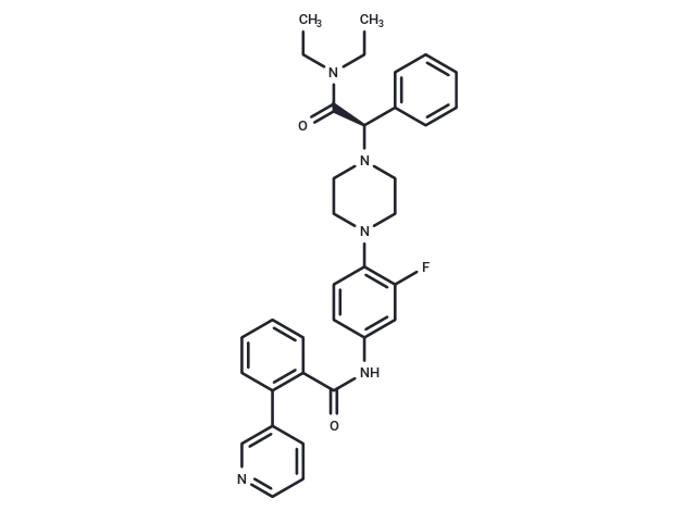 – [C@@H](C(N(CC)CC)=O)(N1CCN(CC1)C2=C(F)C=C(NC(=O)C3=C(C=CC=C3)C=4C=CC=NC4)C=C2)C5=CC=CC=C5