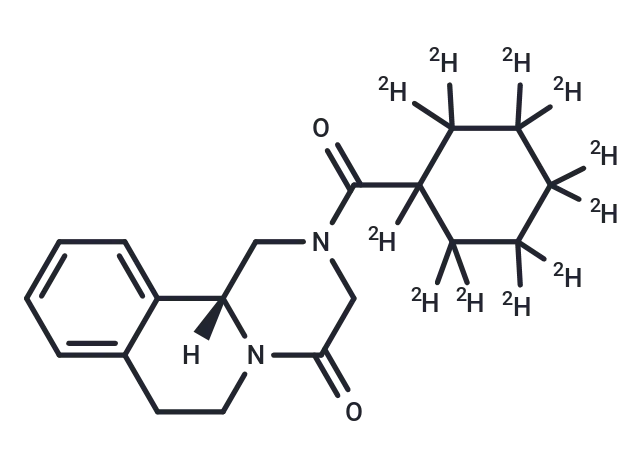 – (R)-Praziquantel D11 is the deuterium labeled (R)-Praziquantel. (R)-Praziquantel is the active enantiomer of Praziquantel, is a partial the human 5-HT2B receptor agonist