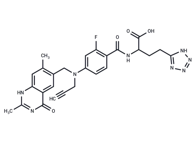 – O=C1C=2C(=CC(C)=C(CN(CC#C)C3=CC(F)=C(C(NC(CCC=4NN=NN4)C(O)=O)=O)C=C3)C2)NC(C)=N1