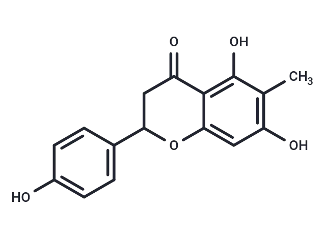 – (rac)-Poriol (5,7,4′-Trihydroxy-6-methylflavanone) demonstrates antioxidant properties by effectively scavenging the free radical DPPH, with an IC50 value of 0.18 µg/mL. It can significantly inhibit LPS-induced NO production in RAW264.7 cells, achieving a 98.35% inhibition rate at a concentration of 10 μM, indicating its anti-inflammatory potential. Furthermore, (rac)-Poriol shows strong binding affinity with iNOS, COX-1, COX-2, TNF-α, and IL-1β.