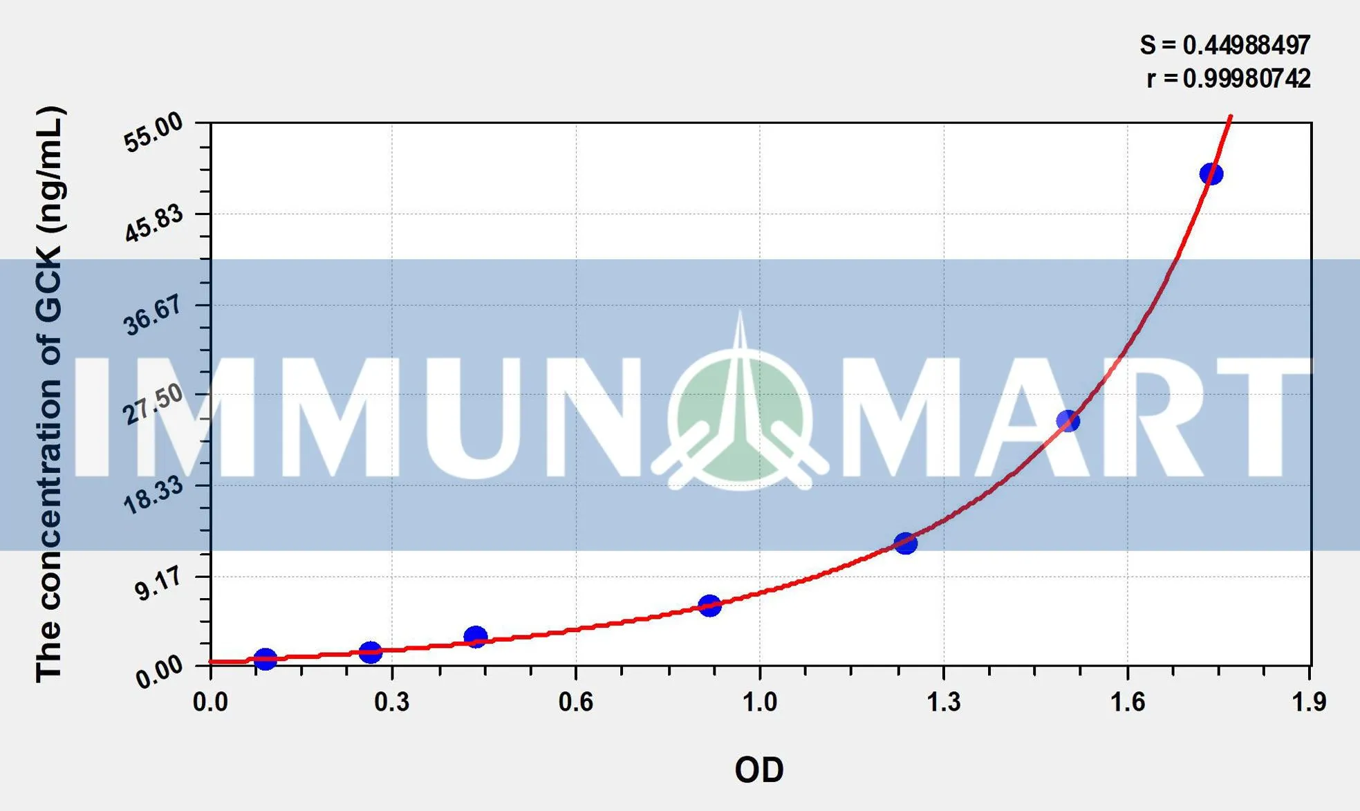 – The test principle applied in this kit is Sandwich enzyme immunoassay. The microtiter plate provided in this kit has been pre-coated with an antibody specific to Rat GCK. Standards or samples are added to the appropriate microtiter plate wells then with a biotin-conjugated antibody specific to Rat GCK. Next, Avidin conjugated to Horseradish Peroxidase (HRP) is added to each microplate well and incubated. After TMB substrate solution is added, only those wells that contain Rat GCK, biotin-conjugated antibody and enzyme-conjugated Avidin will exhibit a change in color. The enzyme-substrate reaction is terminated by the addition of sulphuric acid solution and the color change is measured spectrophotometrically at a wavelength of 450nm ± 10nm. The concentration of Rat GCK in the samples is then determined by comparing the OD of the samples to the standard curve.