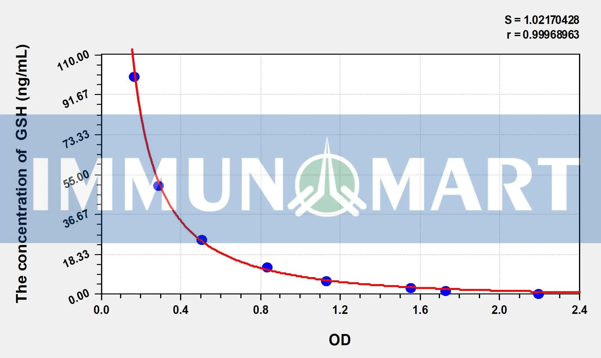 – This assay employs the competitive inhibition enzyme immunoassay technique. The microtiter plate provided in this kit has been pre-coated with Rat GSH protein. Standards or samples are added to the appropriate microtiter plate wells then with a biotin-conjugated antibody specific to Rat GSH. Next, Avidin conjugated to Horseradish Peroxidase (HRP) is added to each microplate well and incubated. After TMB substrate solution is added. The enzyme-substrate reaction is terminated by the addition of sulphuric acid solution and the color change is measured spectrophotometrically at a wavelength of 450nm ± 10nm. The concentration of Rat GSH in the samples is then determined by comparing the OD of the samples to the standard curve.