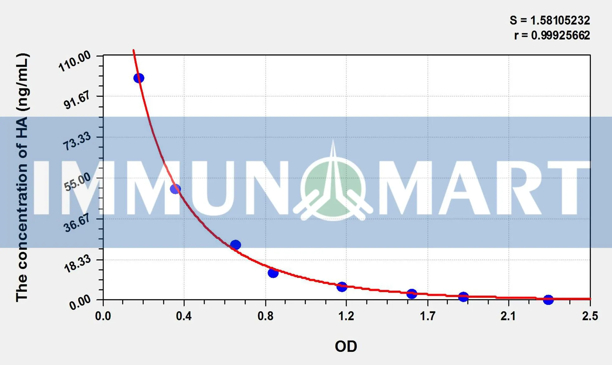 – This assay employs the competitive inhibition enzyme immunoassay technique. The microtiter plate provided in this kit has been pre-coated with Rat HA protein. Standards or samples are added to the appropriate microtiter plate wells then with a biotin-conjugated antibody specific to Rat HA. Next, Avidin conjugated to Horseradish Peroxidase (HRP) is added to each microplate well and incubated. After TMB substrate solution is added. The enzyme-substrate reaction is terminated by the addition of sulphuric acid solution and the color change is measured spectrophotometrically at a wavelength of 450nm ± 10nm. The concentration of Rat HA in the samples is then determined by comparing the OD of the samples to the standard curve.