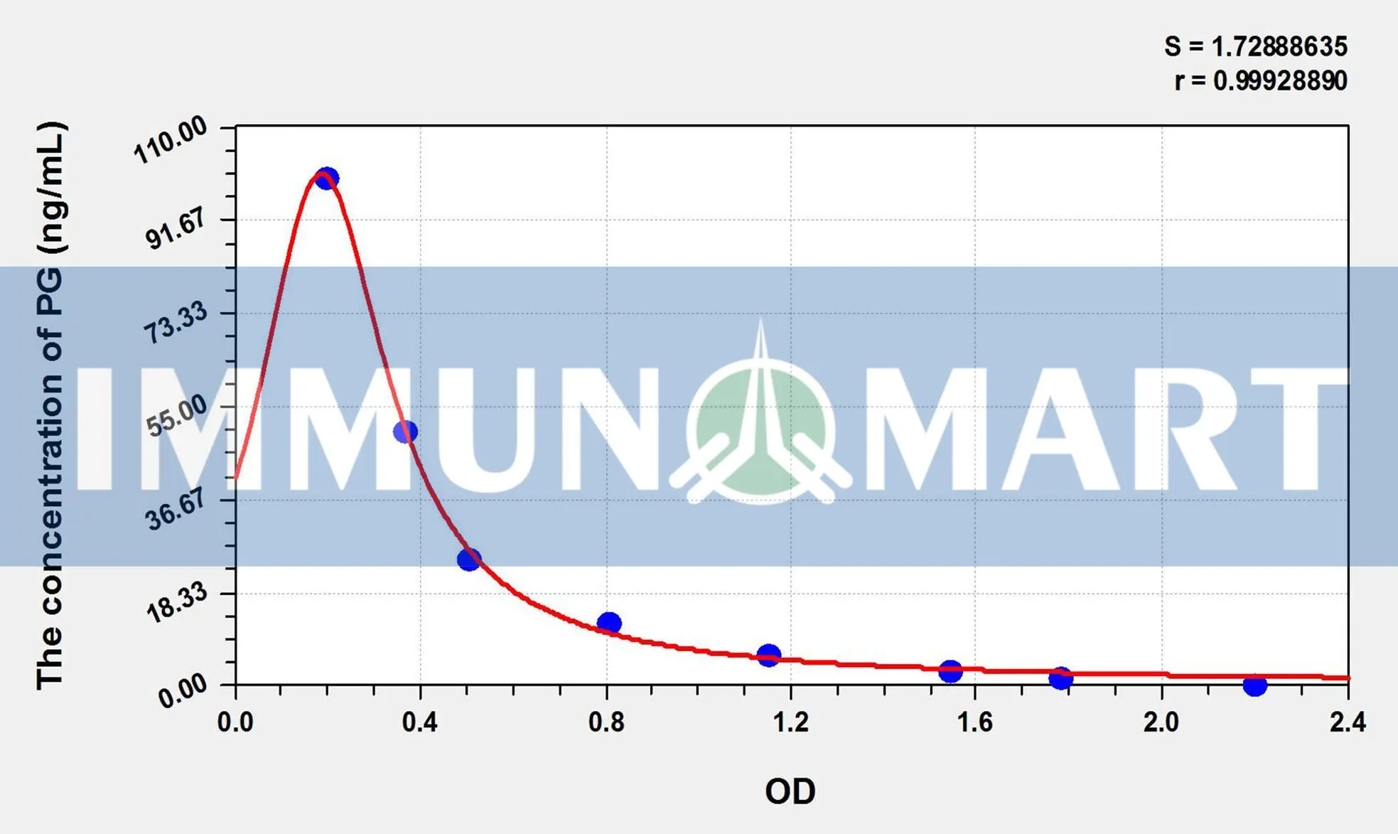 – This assay employs the competitive inhibition enzyme immunoassay technique. The microtiter plate provided in this kit has been pre-coated with Rat PG protein. Standards or samples are added to the appropriate microtiter plate wells then with a biotin-conjugated antibody specific to Rat PG. Next, Avidin conjugated to Horseradish Peroxidase (HRP) is added to each microplate well and incubated. After TMB substrate solution is added. The enzyme-substrate reaction is terminated by the addition of sulphuric acid solution and the color change is measured spectrophotometrically at a wavelength of 450nm ± 10nm. The concentration of Rat PG in the samples is then determined by comparing the OD of the samples to the standard curve.
