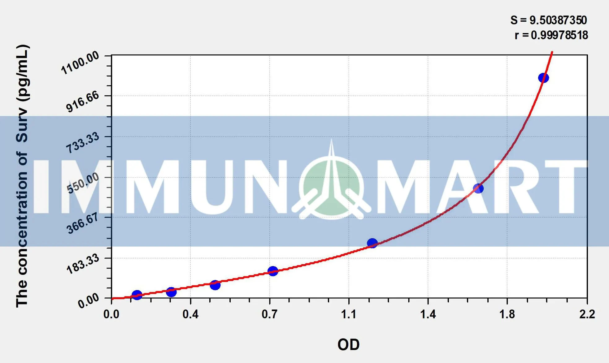 – The test principle applied in this kit is Sandwich enzyme immunoassay. The microtiter plate provided in this kit has been pre-coated with an antibody specific to Rat Surv. Standards or samples are added to the appropriate microtiter plate wells then with a biotin-conjugated antibody specific to Rat Surv. Next, Avidin conjugated to Horseradish Peroxidase (HRP) is added to each microplate well and incubated. After TMB substrate solution is added, only those wells that contain Rat Surv, biotin-conjugated antibody and enzyme-conjugated Avidin will exhibit a change in color. The enzyme-substrate reaction is terminated by the addition of sulphuric acid solution and the color change is measured spectrophotometrically at a wavelength of 450nm ± 10nm. The concentration of Rat Surv in the samples is then determined by comparing the OD of the samples to the standard curve.