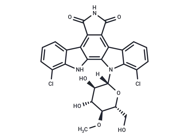 – O=C1C2=C3C(N(C=4C3=CC=CC4Cl)[C@@]5(O[C@H](CO)[C@@H](OC)[C@H](O)[C@H]5O)[H])=C6C(=C2C(=O)N1)C=7C(N6)=C(Cl)C=CC7