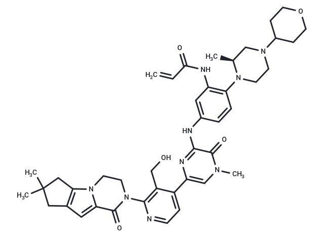 – O=C1C=2N(C3=C(C2)CC(C)(C)C3)CCN1C4=C(CO)C(=CC=N4)C=5N=C(NC6=CC(NC(C=C)=O)=C(C=C6)N7[C@@H](C)CN(CC7)C8CCOCC8)C(=O)N(C)C5