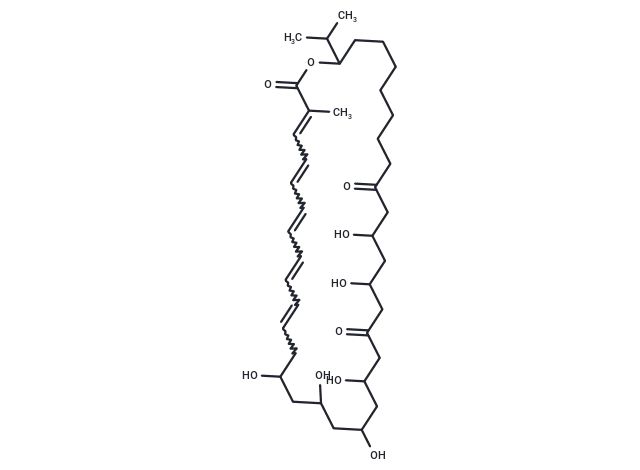 – CC(C)C1CCCCCCCC(=O)CC(O)CC(O)CC(=O)CC(O)CC(O)CC(O)CC(O)CC=CC=CC=CC=CC=C(C)C(=O)O1 |w:35.34,37.36,39.38,41.40,43.42|