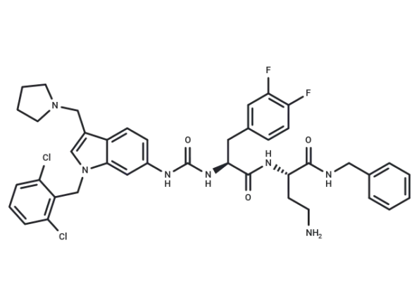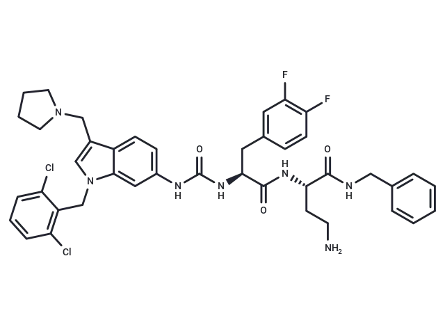– C(N1C=2C(C(CN3CCCC3)=C1)=CC=C(NC(N[C@@H](CC4=CC(F)=C(F)C=C4)C(N[C@H](C(NCC5=CC=CC=C5)=O)CCN)=O)=O)C2)C6=C(Cl)C=CC=C6Cl