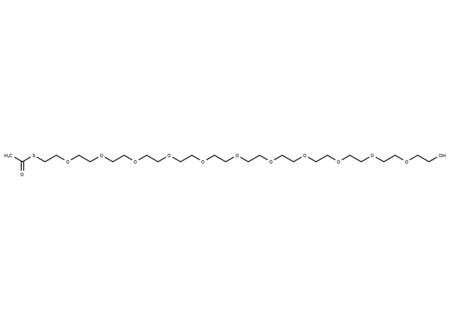 – S-acetyl-PEG12-alcohol is a PEG-based linker for PROTACs that joins two essential ligands, facilitating the formation of PROTAC molecules and enabling selective protein degradation through the ubiquitin-proteasome system within cells.