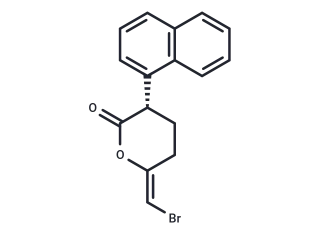 – (S)-Bromoenol lactone ((S)-BEL) inhibits the arachidonate release induced by vasopressin from cultured rat aortic smooth muscle (A10) cells with an IC50 of 2 μM. (S)-BEL is an irreversible, chiral, mechanism-based calcium-independent phospholipase A2β (iPLA2β) inhibitor [1].