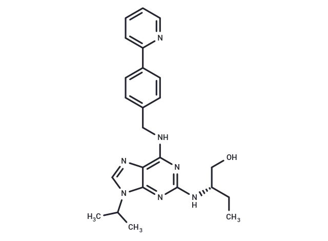 – C(C)(C)N1C=2C(=C(NCC3=CC=C(C=C3)C4=CC=CC=N4)N=C(N[C@@H](CC)CO)N2)N=C1