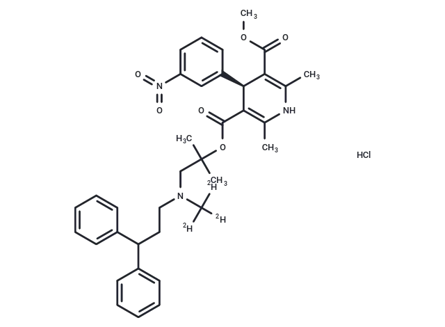 – C(OC(CN(CCC(C1=CC=CC=C1)C2=CC=CC=C2)C([2H])([2H])[2H])(C)C)(=O)C=3[C@H](C(C(OC)=O)=C(C)NC3C)C4=CC(N(=O)=O)=CC=C4.Cl